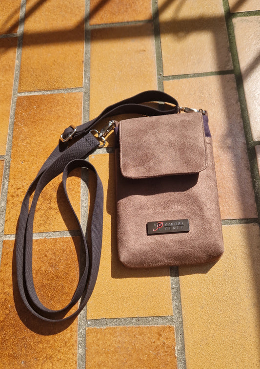 Handytasche zum Umhängen Velours Kunstleder Mittelbraun