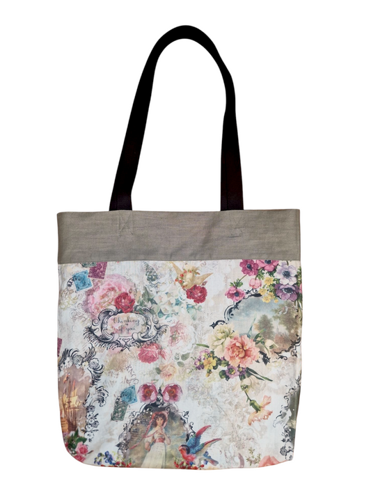 Einkaufsbeutel aus Leinen und Canvas Blumenmuster (2 Teil)