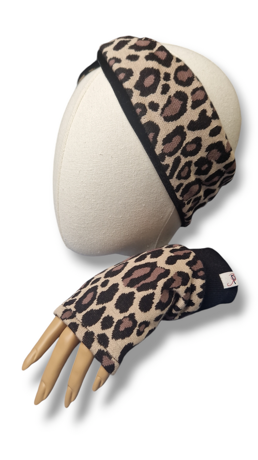 Set Stirnband und Handschuhe zum Wenden Leopard/Samt