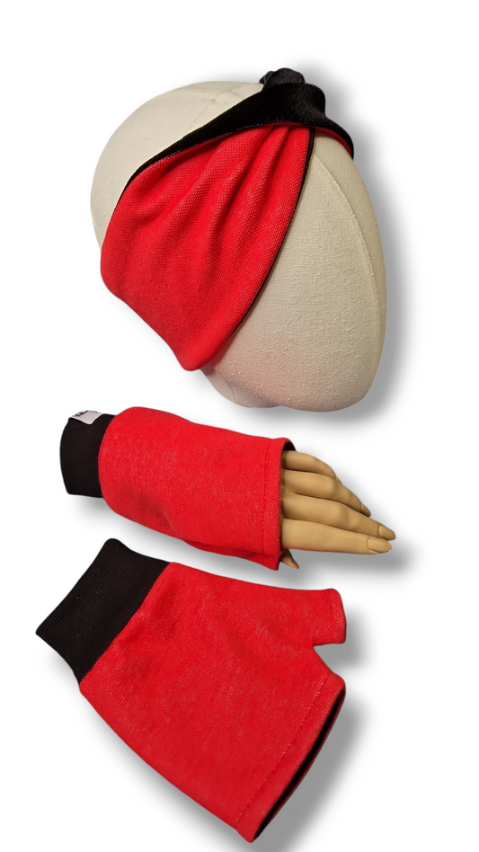 Set Stirnband und Handschuhe zum Wenden Rot/Samt