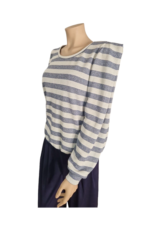 • Pullover Streifen-Glitzer Wollweiss/Hellblau