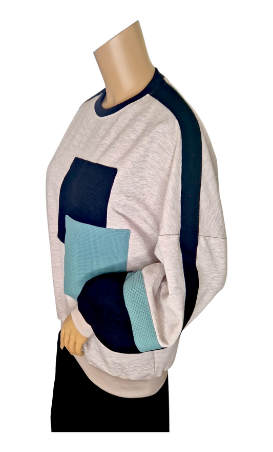 • Warmer Sweatshirt Melange und Waffelpiqué Beige