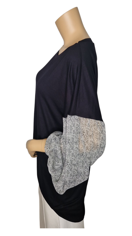 Langarm-Shirt mit Chiffon-Ärmeln in Fischgrätmuster