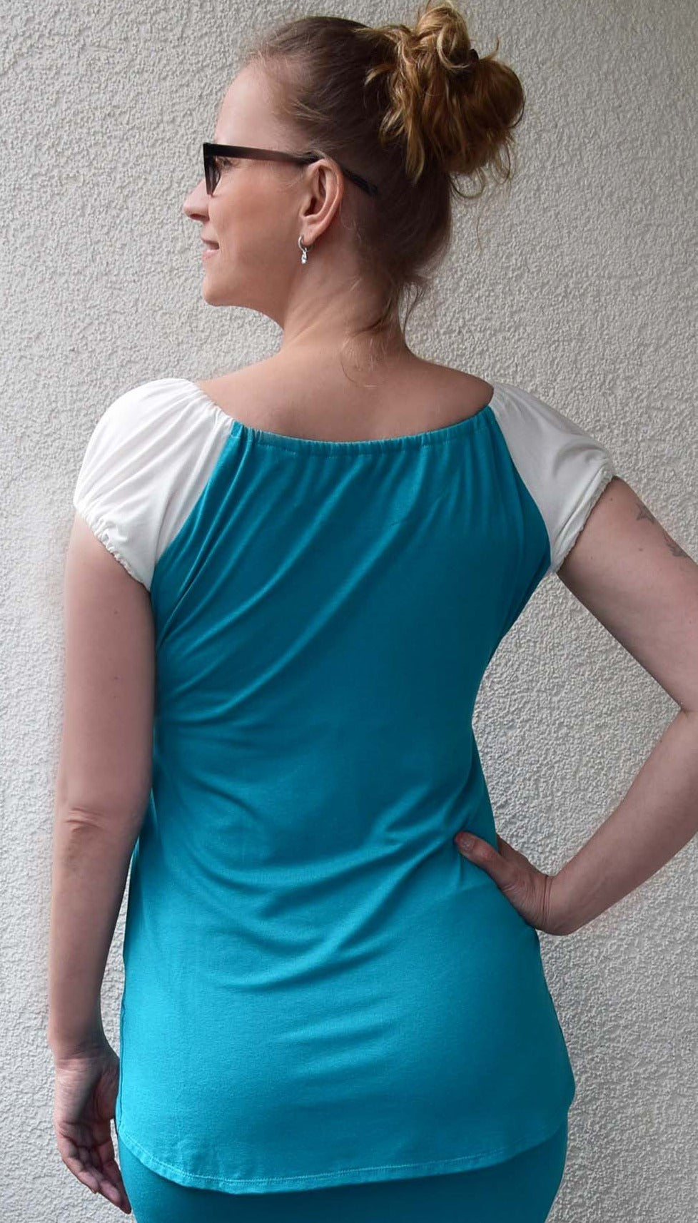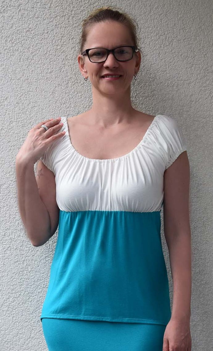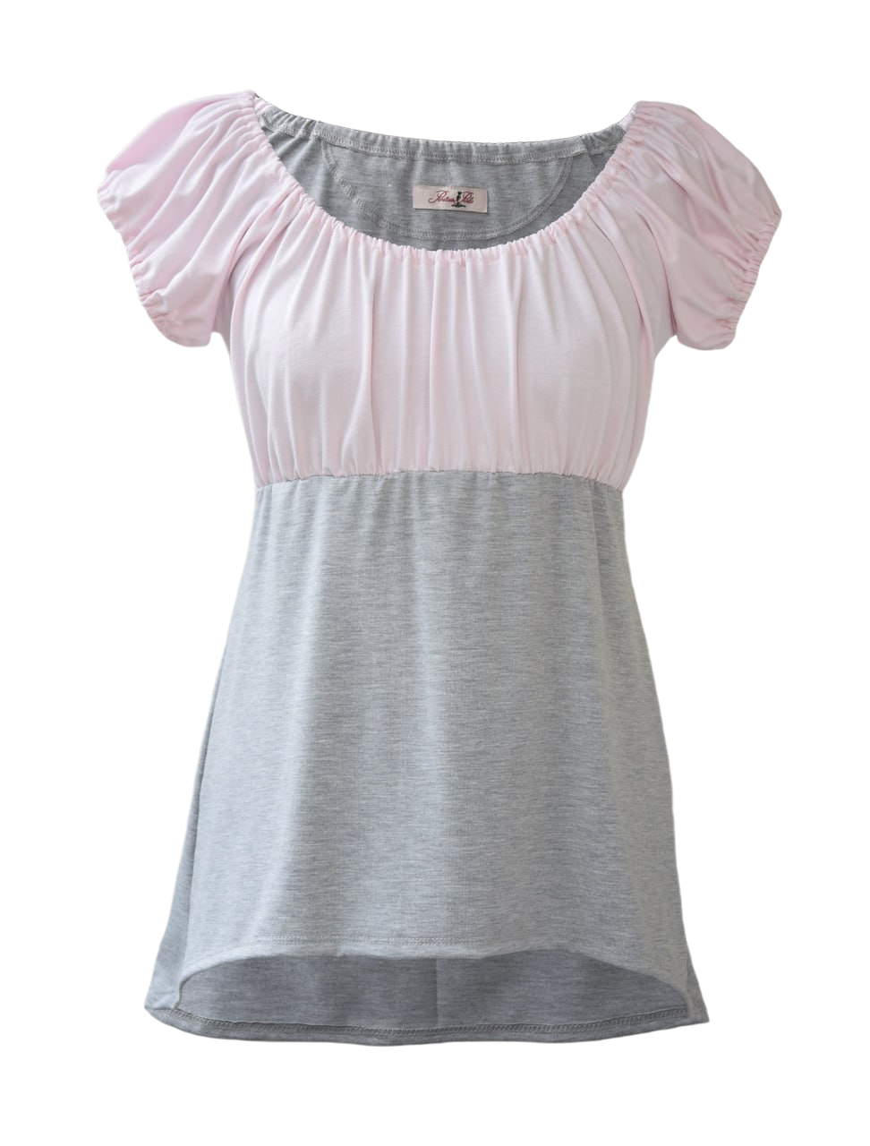 Carmenausschnitt Hellrosa Hellgrau Melange