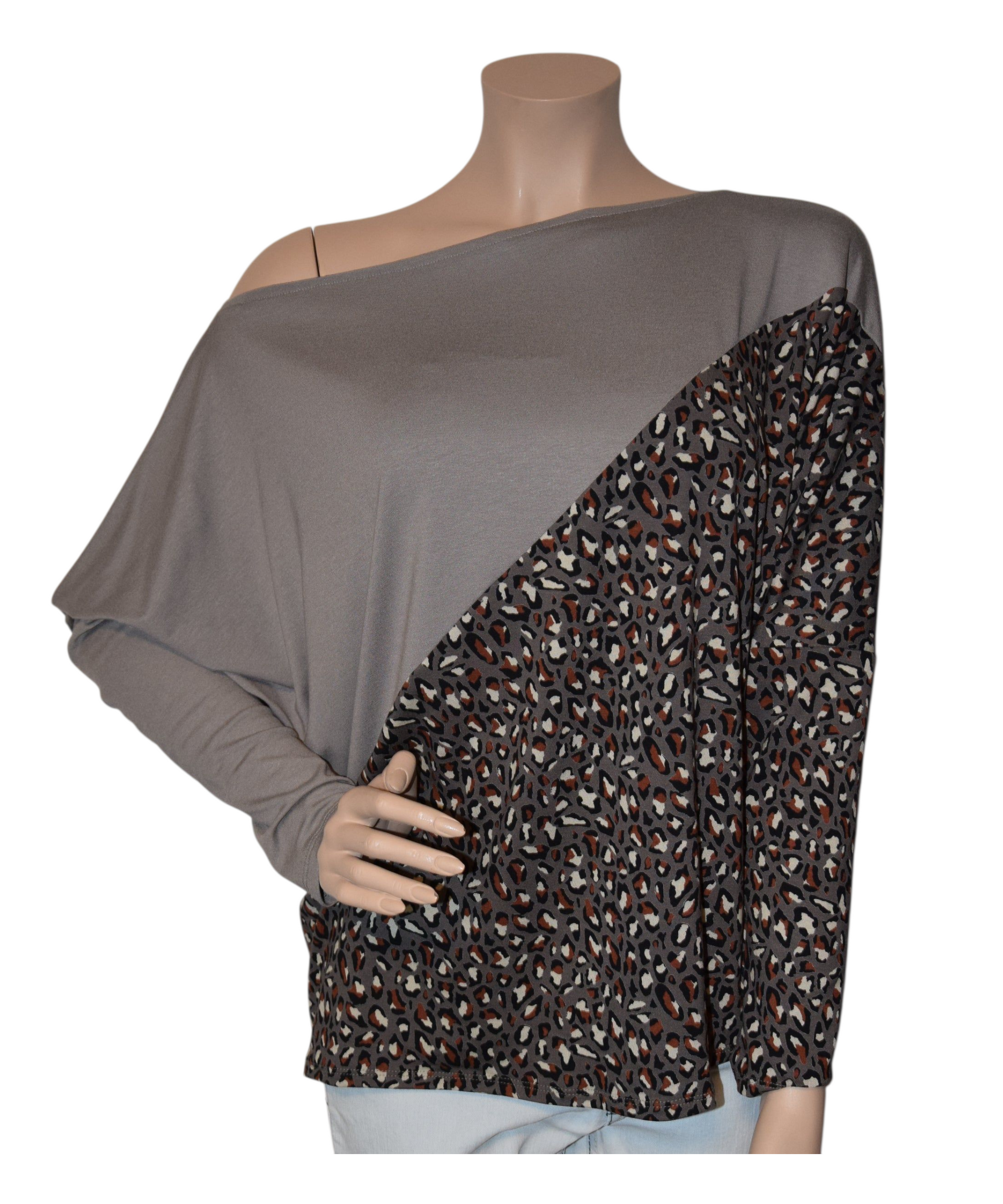 Dolmanärmel-Pullover Leoparden dunkeltaupe/taupe