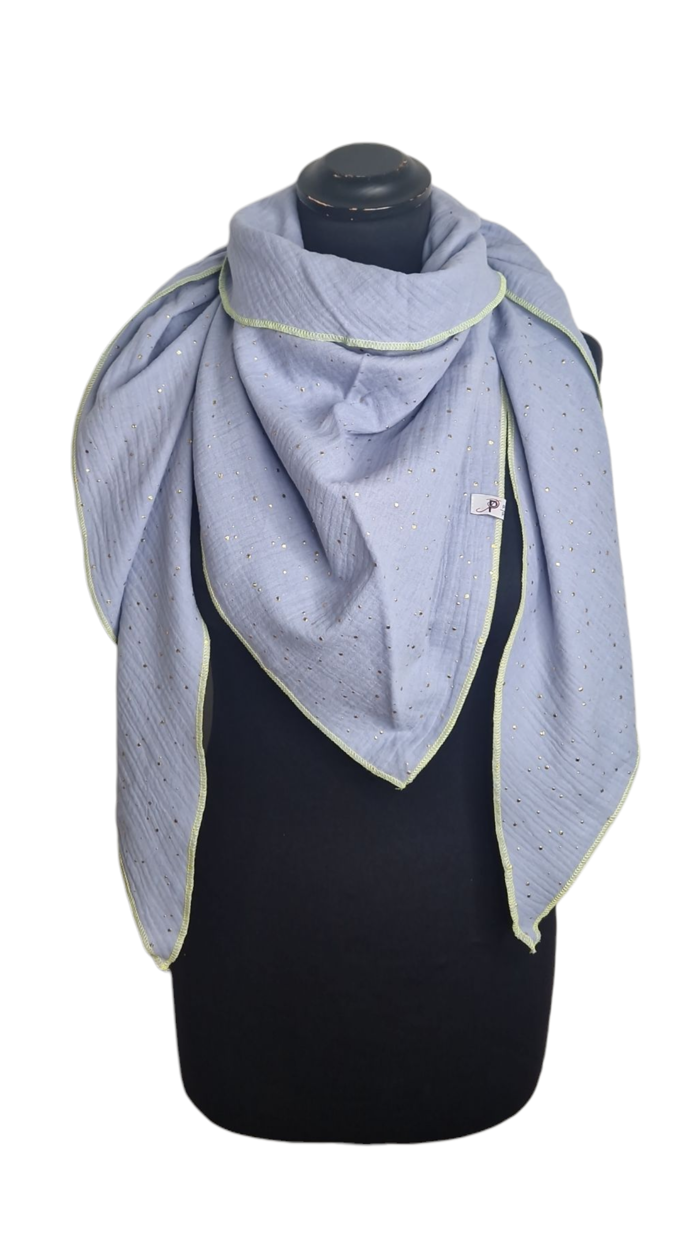 Gold Punkte Musselintuch mit Neonrand-Gelb, Babyblau