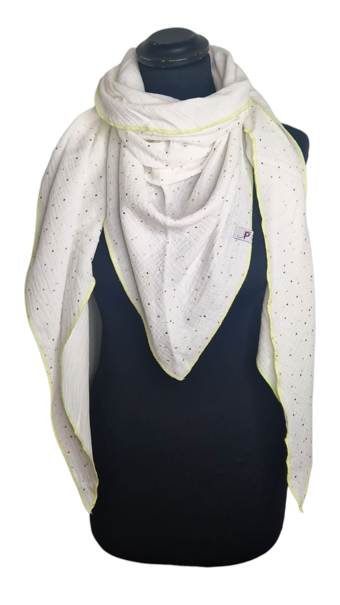 Gold Punkte Musselintuch mit Neonrand-Gelb, weiß