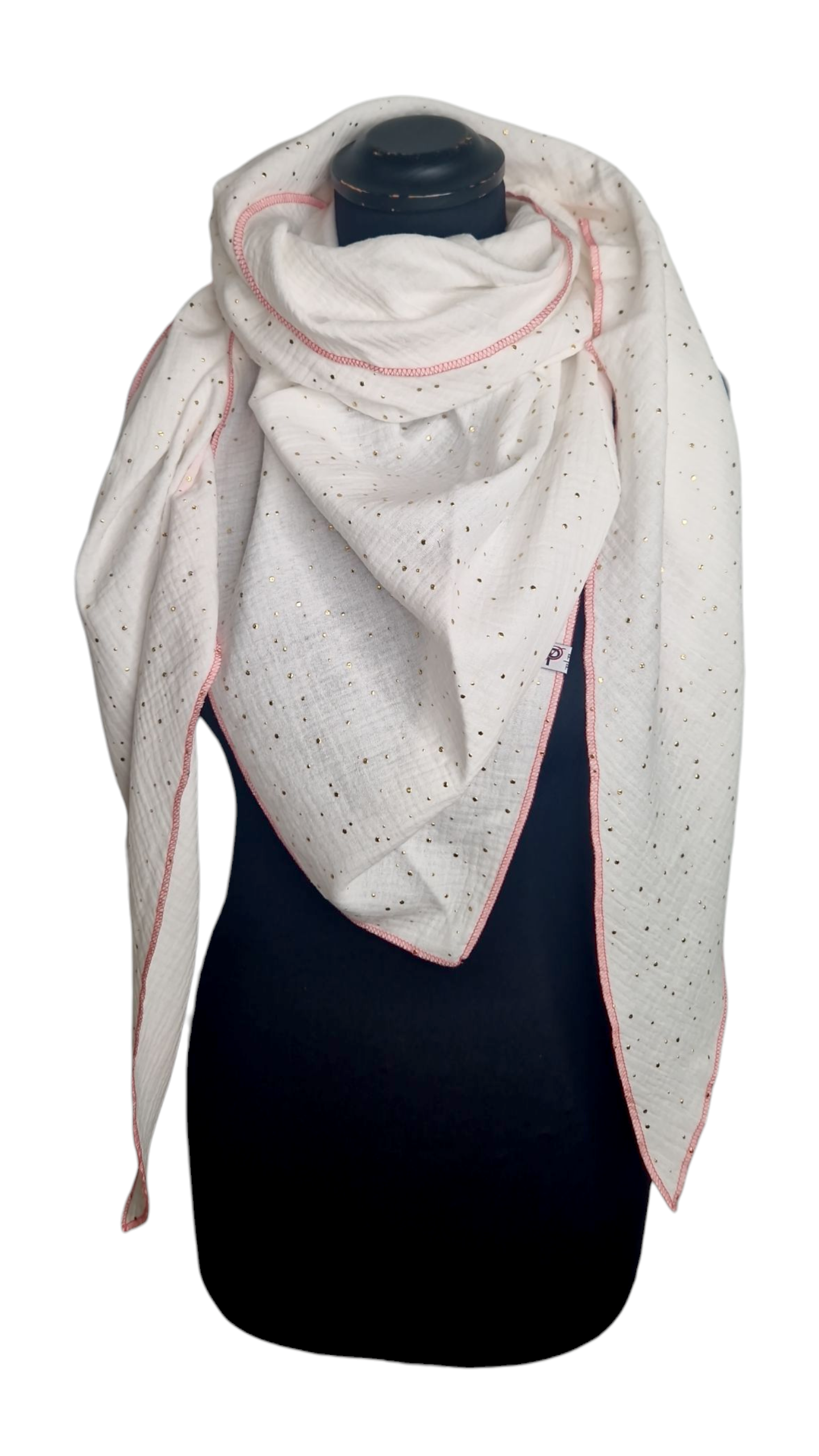 Gold Punkte Musselintuch mit Neonrand-Pink, weiß