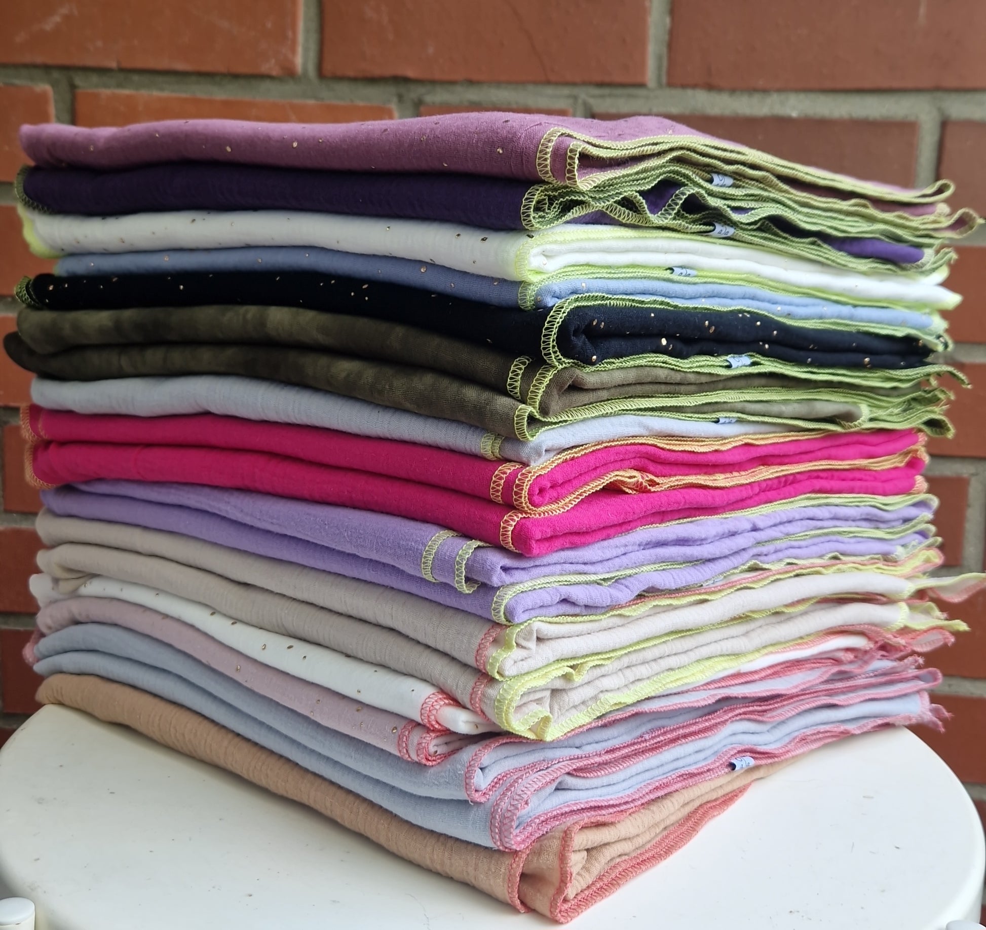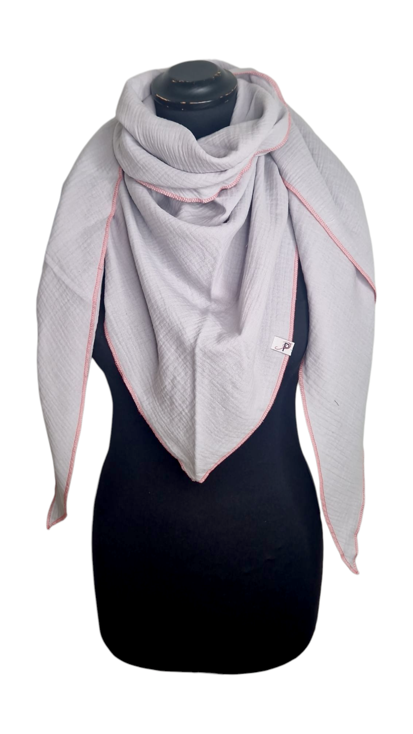 Uni Musselintuch mit Neonrand-Pink, Hellgrau