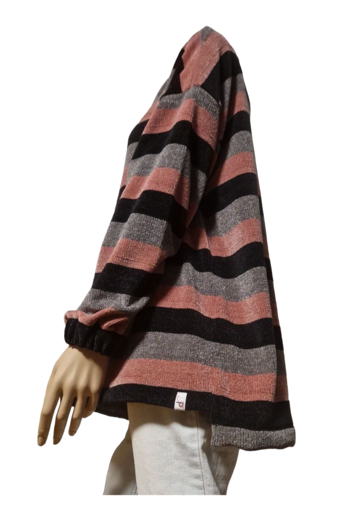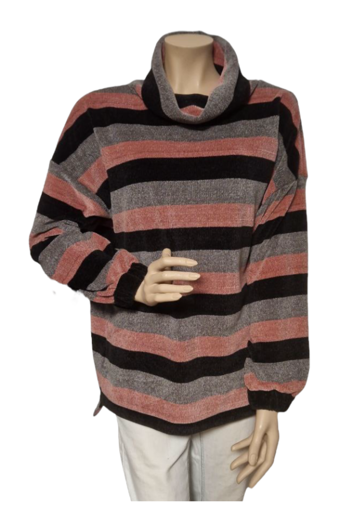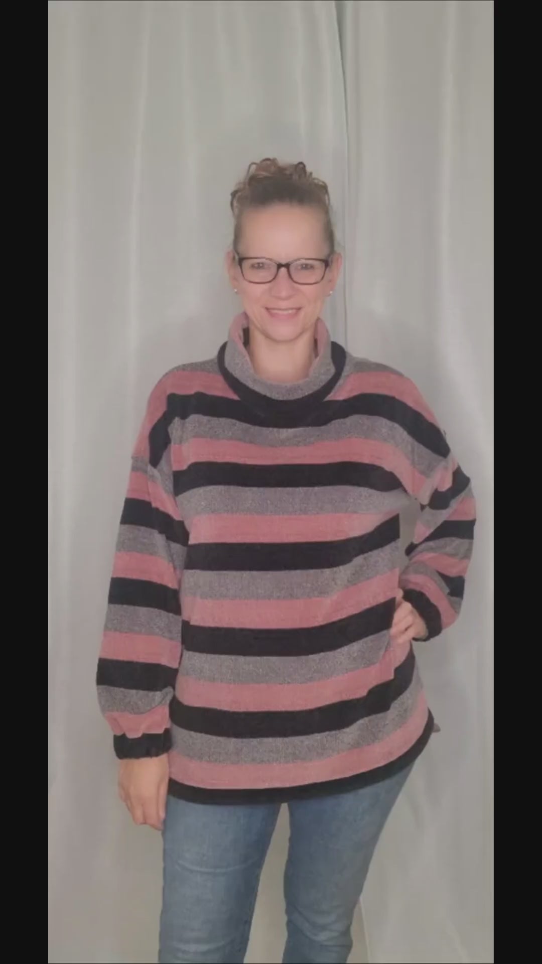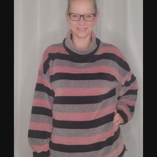 Strickpullover mit Schalkragen und Streifen