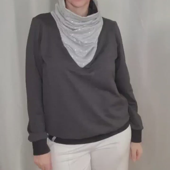 Warmer Sweatshirt mit Schalkragen silberne Sterne